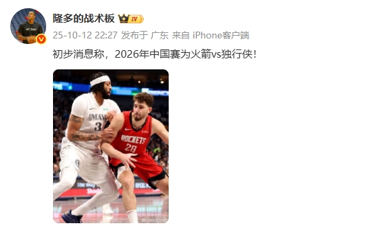 Theo ban chiến thuật của blogger @rondo, tin tức sơ bộ cho biết trận đấu tại Trung Quốc năm 2026 sẽ là Rockets vs. Mavericks!