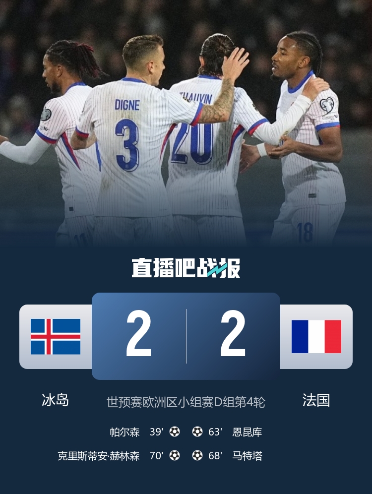 Pháp hòa Iceland 2-2 ở vòng sơ loại thế giới này. Nkunku và Mateta đã ghi bàn trong trận đấu này.