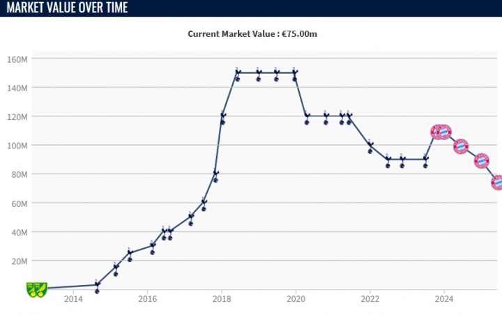 Khi giá Bundesliga được cập nhật lần cuối (vào tháng 6 năm nay), Dezhuan giải thích về sự sụt giảm giá trị của Kane và nói: "Do tuổi tác, Kane đã trải qua đợt giảm giá lớn nhất trong sự nghiệp. Anh ấy vẫn là cầu thủ có giá trị nhất trong độ tuổi của mình, nhưng rõ ràng anh ấy đã không thể lặp lại thành tích đỉnh cao ở Bundesliga mùa giải trước.